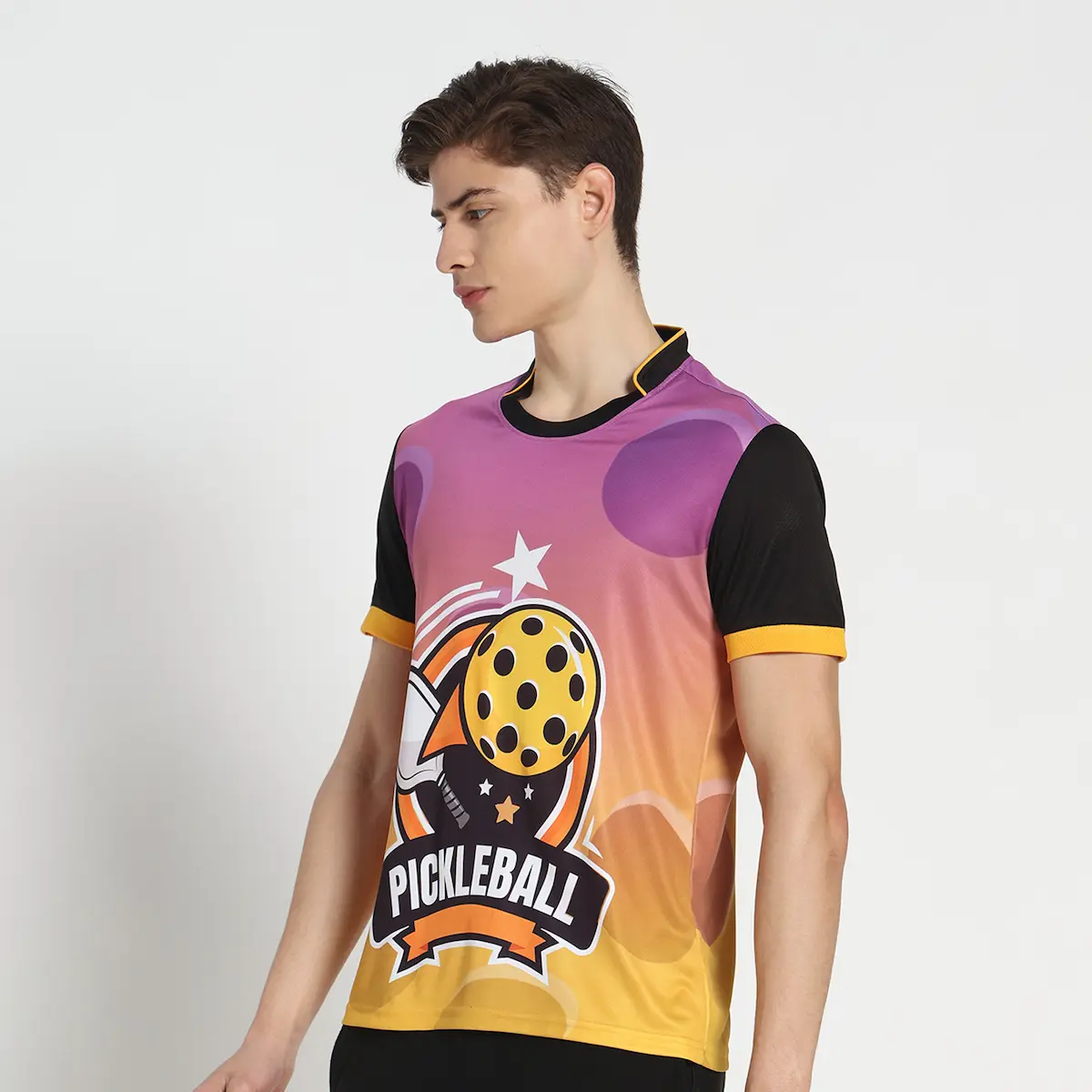 Digitally printed Pickleball Jersey using sublimation technique for dynamic colours, unique design and trendy look. Personalized Pickleball Jerseys with your Name and lucky Number.